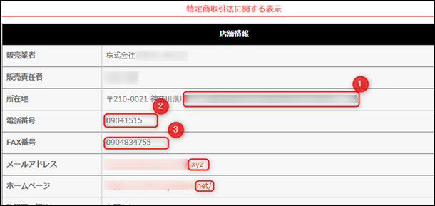 ① 所在地が「マンション名」であるにも関わらず、部屋番号が書いていない。等